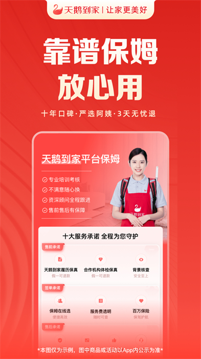 安全保障 隨時響應:天鵝到家為每一位用戶提供高額保險,保障人身財產安全。300人專業(yè)客服團隊,快速響應您的反饋與需求。