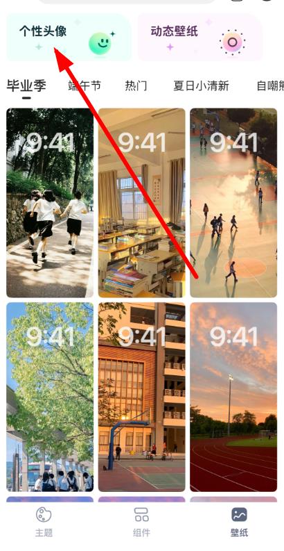 2、在壁紙界面中,點(diǎn)擊個(gè)性頭像按鈕,進(jìn)入頭像選擇頁(yè)面。
