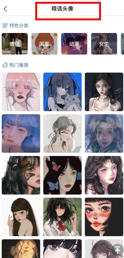 3、進(jìn)入精選頭像頁(yè)面后,在特色分類或熱門推薦里挑選喜歡的頭像,點(diǎn)擊即可免費(fèi)下載使用。