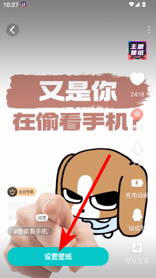 4、在壁紙?jiān)斍轫?yè),點(diǎn)擊設(shè)置壁紙按鈕,即可完成壁紙?jiān)O(shè)置操作。