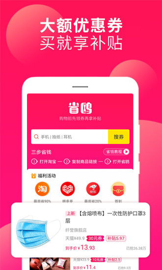 省鷗在這里擁有很多優(yōu)惠的商品,專門為網(wǎng)購愛好者打造的省錢平臺,商品覆蓋面廣泛,從衣食住行樣樣都有,還是你生活的小幫手。在測評專區(qū)里你還能看見近期新品的測評,還有各大平臺的優(yōu)惠券也可以在這里找到,復制商品標題即可搜索。歡迎有需要的朋友下載使用。