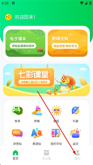 1、打開七彩課堂應(yīng)用,點(diǎn)擊底部導(dǎo)航欄中的我的選項(xiàng)。