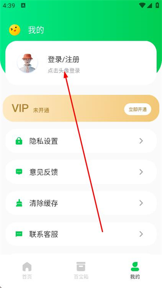 2、在我的頁面中,點(diǎn)擊登錄/注冊區(qū)域的頭像位置。