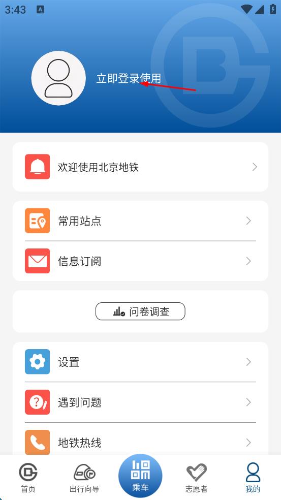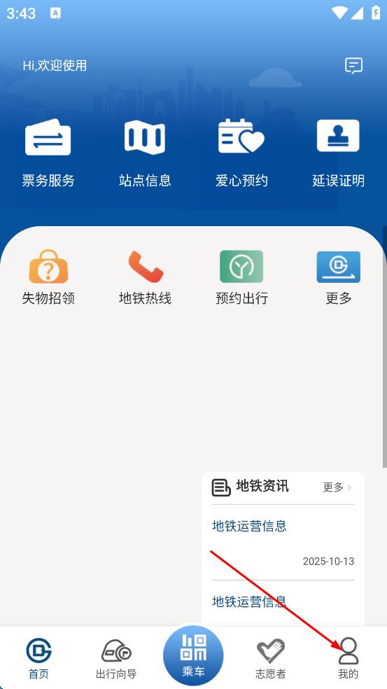 1、打開北京地鐵APP,進入首頁后,點擊頁面右下角“我的”按鈕。