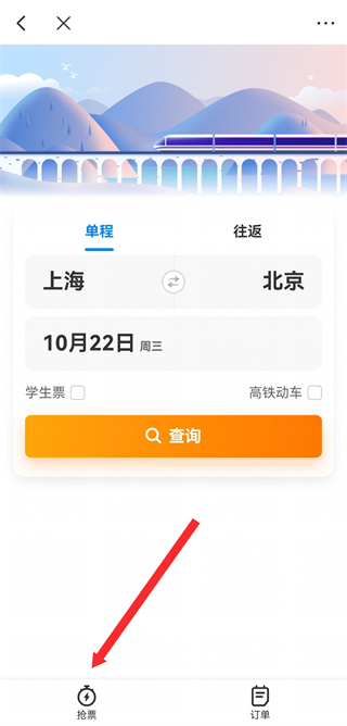 3、在搶票的頁面,需要點擊底下?lián)屍卑粹o,進入云搶票設(shè)置界面。
