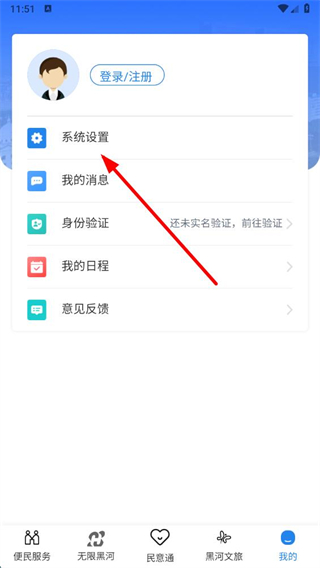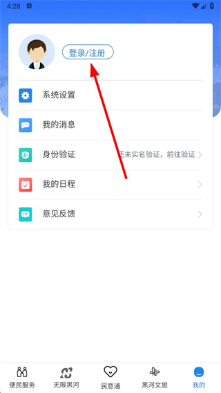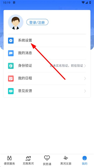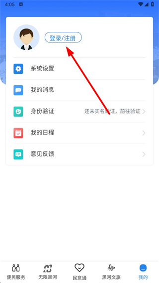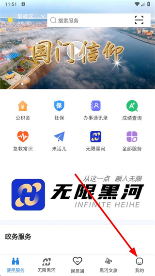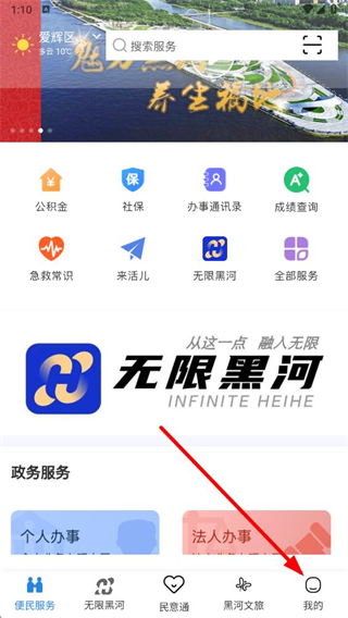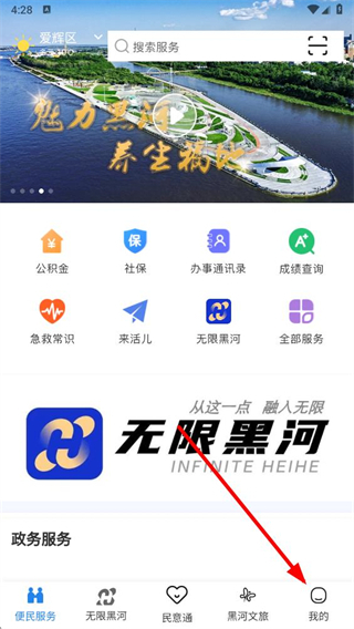 1、打開我的黑河APP,點(diǎn)擊底部導(dǎo)航欄的我的,進(jìn)入個(gè)人頁面。