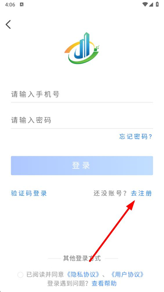 3、進(jìn)入登錄頁面后,點(diǎn)擊去注冊選項(xiàng)。