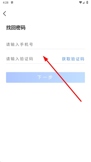4、在找回密碼頁面,輸入注冊時(shí)綁定的手機(jī)號,獲取驗(yàn)證碼輸入,點(diǎn)擊下一步完成后續(xù)密碼重置操作。