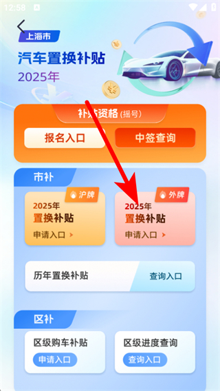 2、在汽車置換補貼的頁面,需要選擇對應(yīng)的補貼類型。