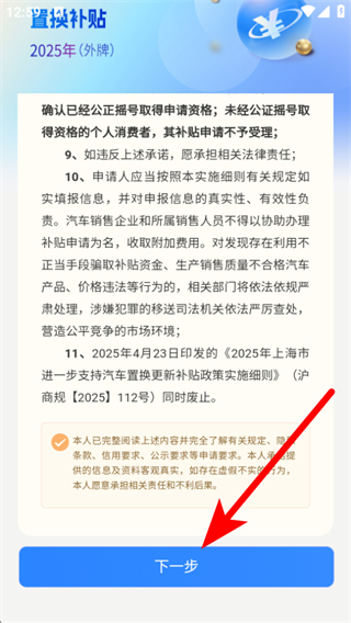 4、勾選確認后點擊下一步,按提示完成購車補貼申請的后續(xù)操作。