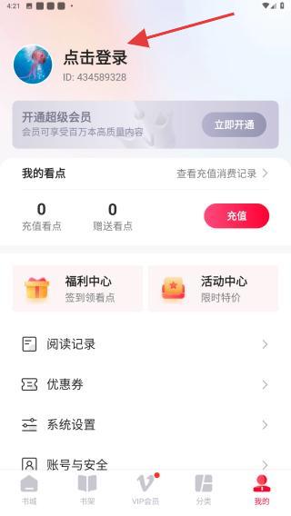 2、點(diǎn)擊后進(jìn)入個(gè)人中心頁(yè)面,點(diǎn)擊正上方點(diǎn)擊登錄的功能按鈕即可跳轉(zhuǎn)至該頁(yè)面。