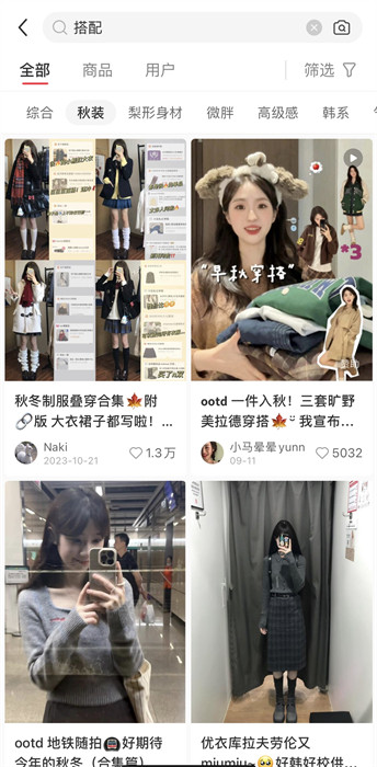 3、接著,短時(shí)間內(nèi)可以看到不同類型的穿搭,如秋冬、小個(gè)子、御姐等等;