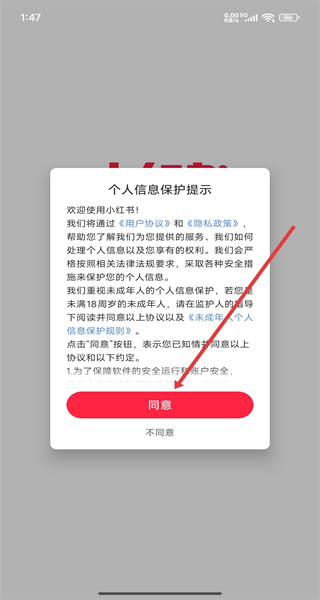 1、在打開App后,可以通過(guò)點(diǎn)擊彈窗中的同意按鈕,進(jìn)入使用。