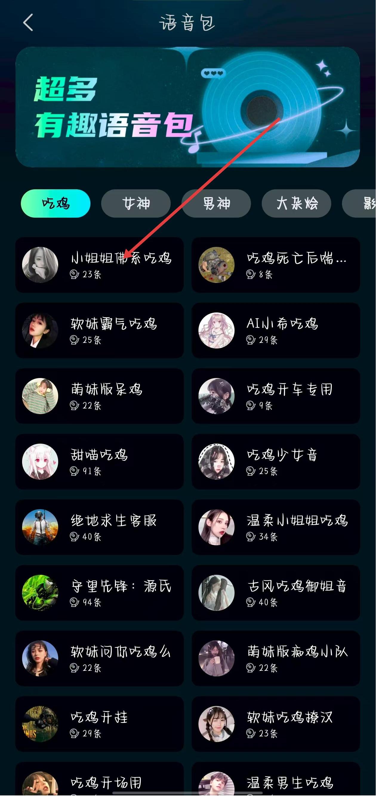 2、在語(yǔ)音包界面,選擇想要的語(yǔ)音包并點(diǎn)擊進(jìn)入。