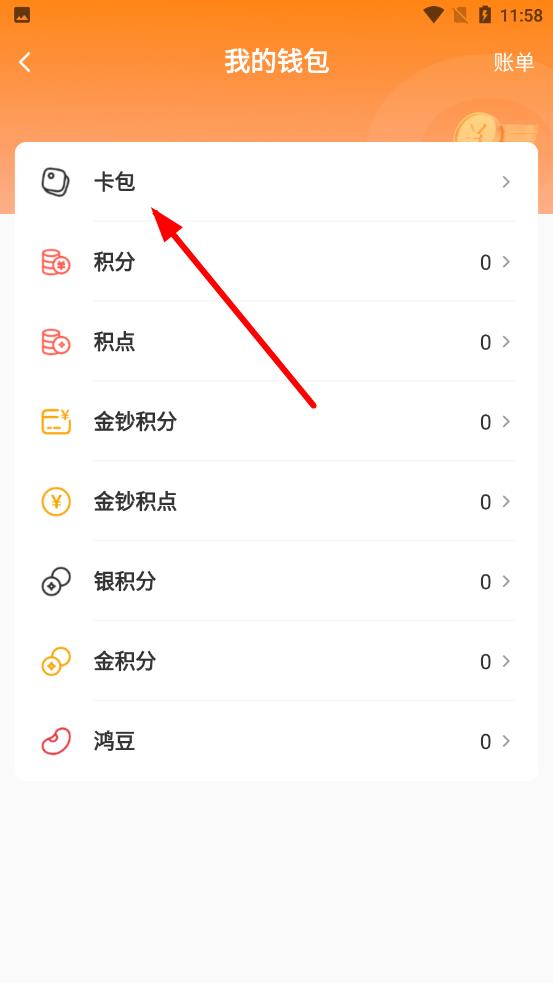 2、進(jìn)入我的錢包界面后找到并點(diǎn)擊卡包選項(xiàng),進(jìn)入卡包管理頁(yè)面,在這里可以查看和管理與卡相關(guān)的內(nèi)容。