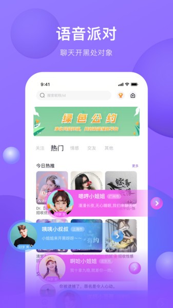 斜杠交友a(bǔ)pp年輕交友聚集地,在這你可以找到志趣相投的伙伴特色的語音派對(duì)豐富的交友廣場(chǎng)在這你可以分享你的心情,興趣可以找到和你志趣相投的伙伴,感受專屬的社交體驗(yàn),感興趣的用戶就來下載吧!
