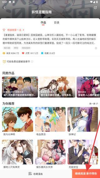 2、進(jìn)入到詳情頁(yè)面內(nèi),點(diǎn)擊繼續(xù)閱讀進(jìn)入漫畫(huà)閱讀界面。