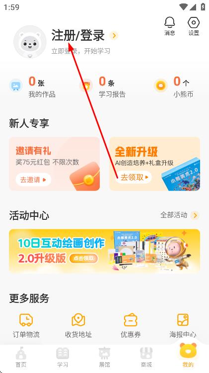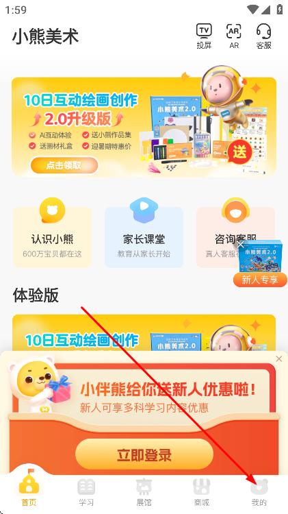 1、打開小熊美術(shù)app,點(diǎn)擊底部導(dǎo)航欄中的我的選項(xiàng)。