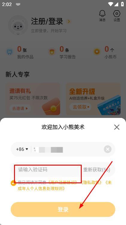 4、填入驗(yàn)證碼,點(diǎn)擊登錄,即可完成注冊(cè)并登錄賬號(hào)。