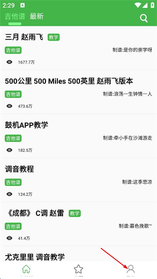 1、進(jìn)入軟件吉他譜頁面,點(diǎn)擊右下角個(gè)人圖標(biāo)。