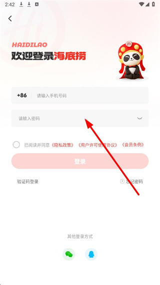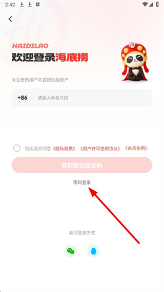 海底撈app怎么用密碼登錄賬號