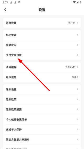 3、在設置頁面中,找到支付安全設置選項并點擊,進入支付密碼相關的設置頁面。