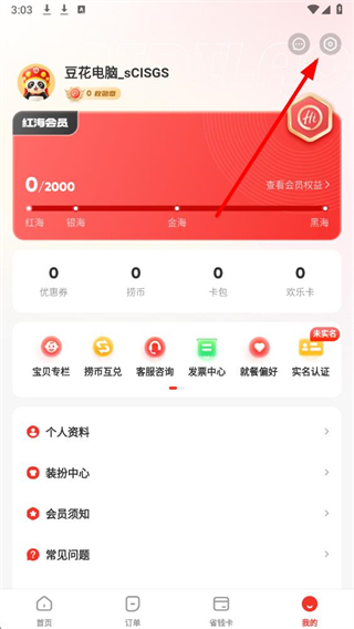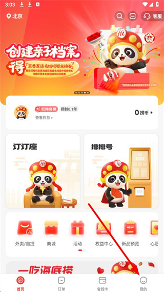 1、打開海底撈APP,點擊底部導航欄最右側(cè)的我的,進入個人頁面。