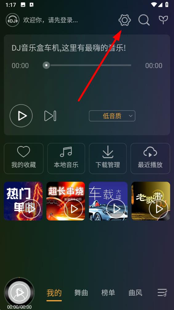 1、打開DJ音樂盒應(yīng)用,在主界面點(diǎn)擊右上角的設(shè)置圖標(biāo),進(jìn)入相關(guān)設(shè)置頁面。