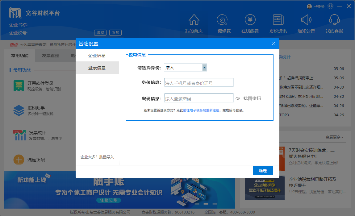 4、點(diǎn)擊主頁面“添加”按鈕,進(jìn)行企業(yè)“添加”,信息輸入完成后點(diǎn)擊“下一步”-“確定”