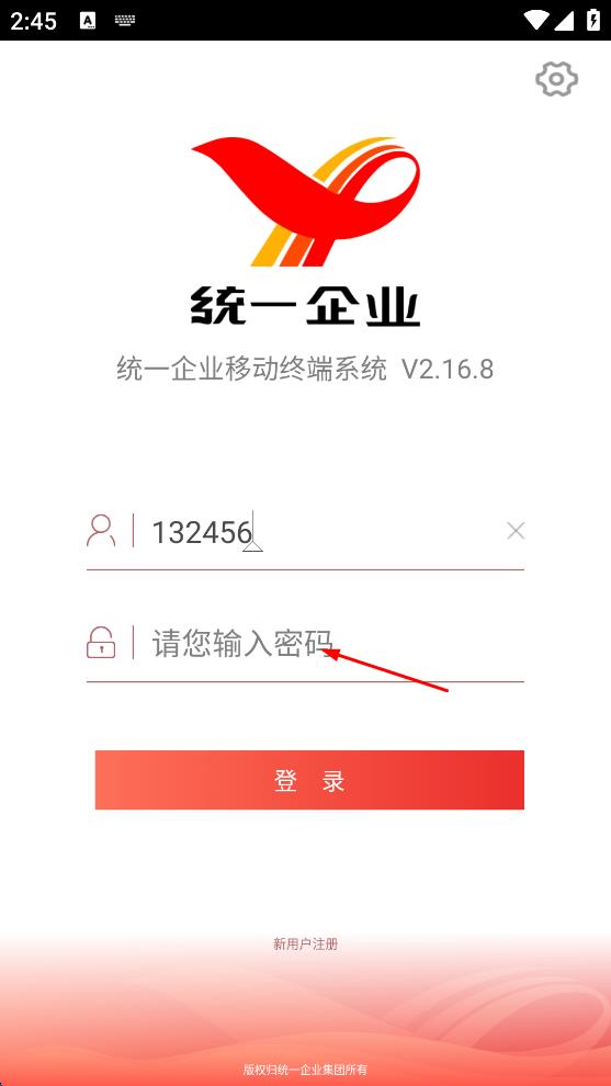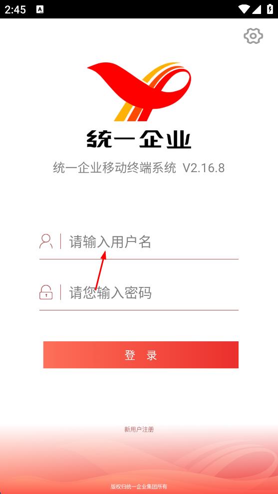 1、打開統(tǒng)一企業(yè)移動終端系統(tǒng),進(jìn)入登錄頁面,在“請輸入用戶名”欄填寫自己的用戶名。