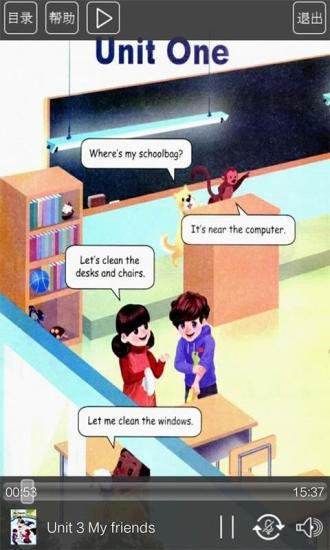 人教版四年級英語上冊app免費版提供了輕松簡單的英語學習模式,將教材上的英語知識內容完美同步到了app上,學生們在課下就可以在線點讀英語單詞和課本內容,支持點讀、朗讀、復讀操作。歡迎下載使用。