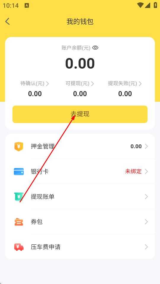4、在“我的錢包”頁面,查看賬戶余額等信息后,點(diǎn)擊去提現(xiàn)按鈕。