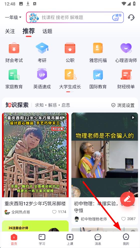 1、打開高途app進入首頁,點擊底部導航欄中的我的選項進入個人相關(guān)界面。