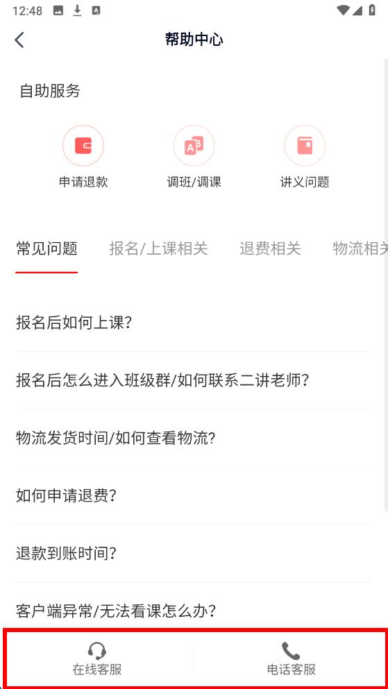 3、進入幫助中心頁面后,在底部就能看到在線客服和電話客服選項,根據(jù)個人選擇聯(lián)系客服的方式。