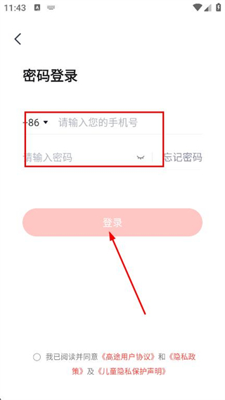 4、輸入手機號和密碼,點擊登錄即可完成登錄。