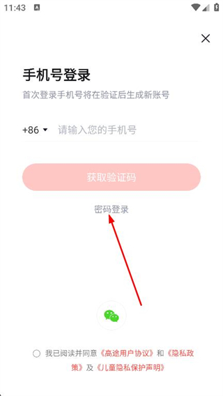 3、在登錄頁面,點擊下方的密碼登錄選項。