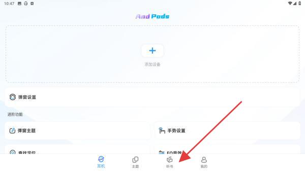 1、啟動AndPods應(yīng)用軟件,在首頁下方導(dǎo)航欄中,點擊聽書的圖標(biāo)。