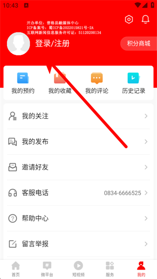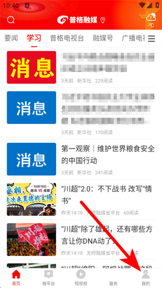1、打開普格融媒app,在首頁點(diǎn)擊底部我的,進(jìn)入個(gè)人頁面。
