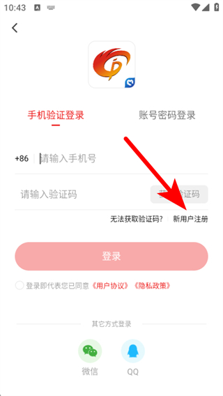 3、在登錄注冊(cè)界面點(diǎn)擊新用戶注冊(cè),進(jìn)入用戶注冊(cè)的流程。