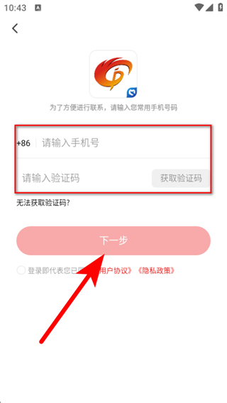 4、在頁面輸入手機(jī)號(hào)和驗(yàn)證碼點(diǎn)擊下一步,完成賬號(hào)注冊(cè)操作。