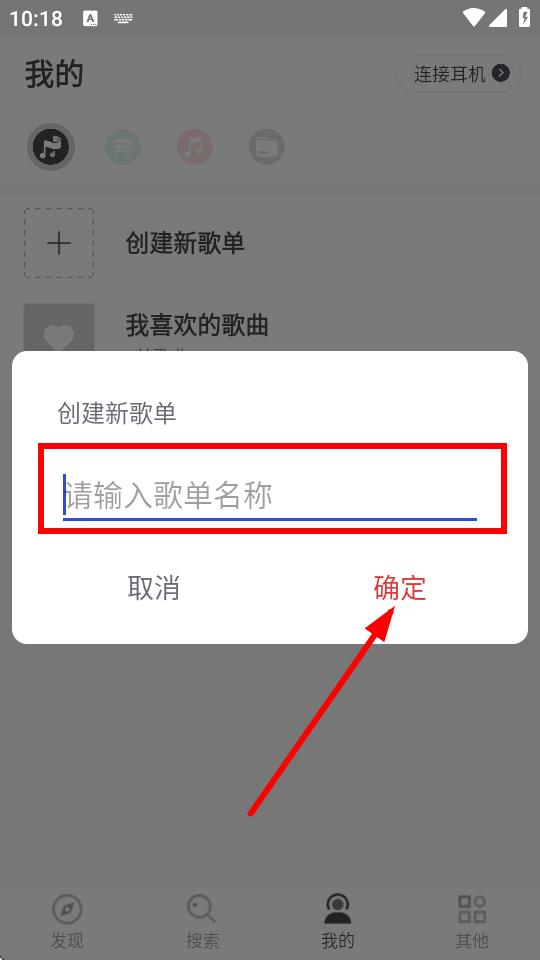 3、在彈出的輸入框中,輸入想要?jiǎng)?chuàng)建的歌單名稱。