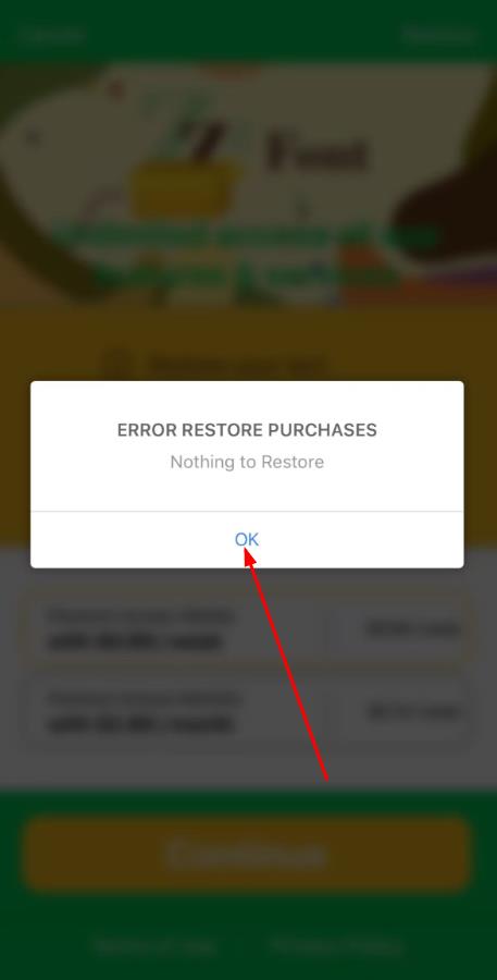 3、若恢復(fù)購(gòu)買時(shí)彈出【ERROR RESTORE PURCHASES Nothing to Restore】提示框,點(diǎn)擊【OK】關(guān)閉該彈窗就可以開始使用。