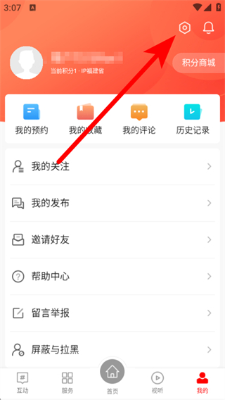 2、在個人頁面點擊右上角的設置圖標,進入設置的界面。