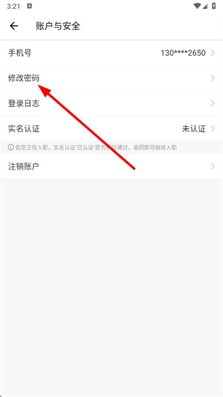 3、在賬戶與安全頁面,點擊修改密碼選項,進(jìn)入修改密碼頁面。