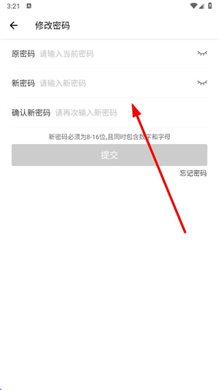4、在修改密碼頁面,依次輸入原密碼、新密碼和確認(rèn)新密碼,然后點擊提交按鈕,完成密碼修改操作。