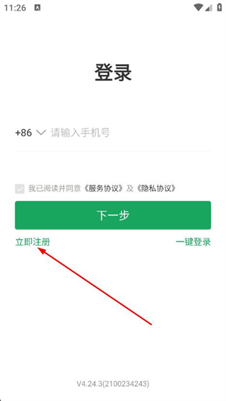 1、打開優(yōu)居找房經(jīng)紀(jì)APP,在登錄頁面點擊立即注冊。