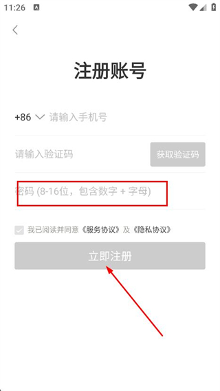 3、設(shè)置密碼,點擊立即注冊按鈕,即可完成賬號注冊。