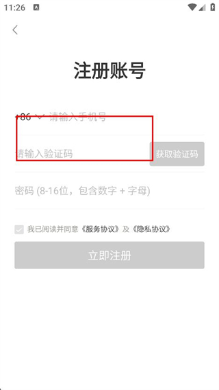 2、在注冊賬號頁面,輸入手機(jī)號和收到的短信驗證碼。
