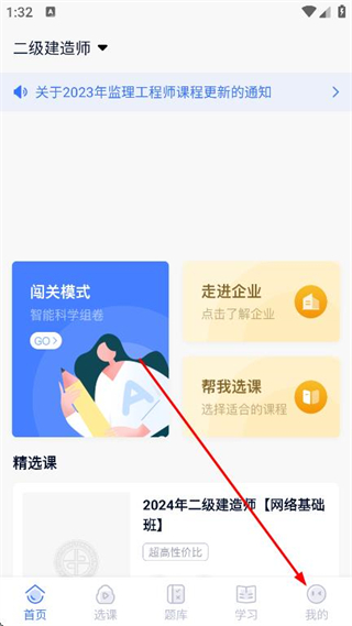 1、打開江蘇勵企教育app,點擊底部導(dǎo)航欄我的。