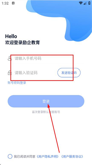 4、輸入手機號和驗證碼,點擊登錄,即可登錄賬號。
